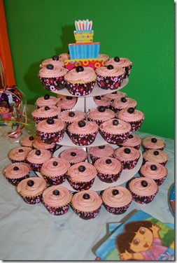 Mommy finishing up the Birthday Girls hair before all the guests arrived. Check out the adorable cupcake on her bloomers.
