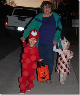 And here was last nights Trick-Or-Treating. Mimi came and joined us for the fun. Thanks again for coming with us Mimi, we loved having you…